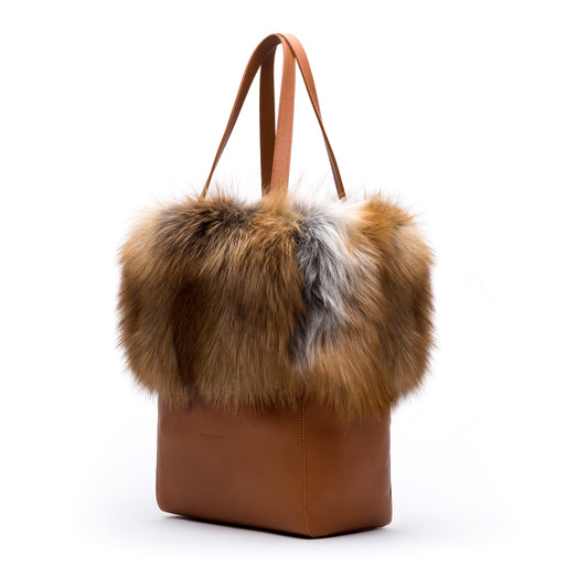 Kaley- Camel Leather Tote with Red Fox