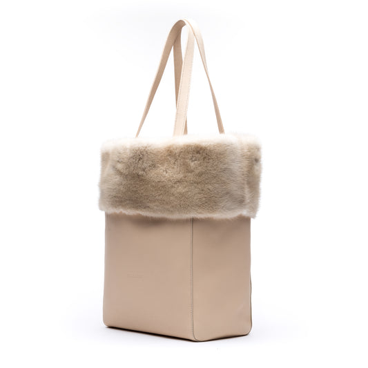 Kaley- Cream Leather Tote with Cream Mink
